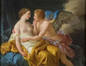 Adequadamente, Eros representa a necessidade de coisas verdadeiramente belas e excelentes, é uma atração que nos faz desejar gerá-las e tê-las em nossa vida. Mais ontologicamente genuíno que o erotismo sexual, Eros é um impulso mais elevado e abrangente, presente em um ser que se sabe incompleto, dirigido para a sabedoria considerada como a coisa mais bela e nobre de todas. No diálogo O Banquete de Platão, Eros é retratado como filho da deusa Pínia (deusa da penúria, carência, ausência, vazio) e Poros (deus da abundância), como um Daimon (δαίμων): um ser entre o divino e o mortal a quem é incumbido a tarefa de realizar a ligação entre estas duas dimensões. Desenvolvido em sua melhor possibilidade, o Erotismo é um impulso vertical que nos leva a tratar a si mesmo como uma obra a ser realizada na unidade com o belo em nossos próprios sentimentos, pensamentos e ações, é um chamado para concretizar o belo em nossa existência no mundo, de um modo que o erotismo sexual é apenas uma manifestação derivada e horizontal: os verdadeiros amantes amam, acima de tudo, a beleza metafísica presente na alma do amado e o ajudam a se tornar sempre melhor.